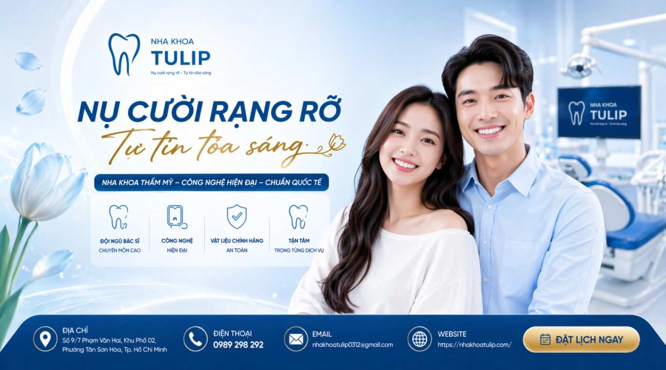 Nha Khoa Tulip – Nha khoa chuyên về thẩm mỹ răng sứ tại Thành phố Hồ Chí Minh tọa lạc tại địa chỉ: Số 9/7 Phạm Văn Hai, Khu Phố 02, Phường Tân Sơn Hòa, Tp.Hồ Chí Minh là 1 trong những địa chỉ nha khoa tại uy tín - chất lượng tại Việt Nam. Nha Khoa Tulip tiên phong về quy trình sản xuất răng sứ xứng tầm đẳng cấp quốc tế.